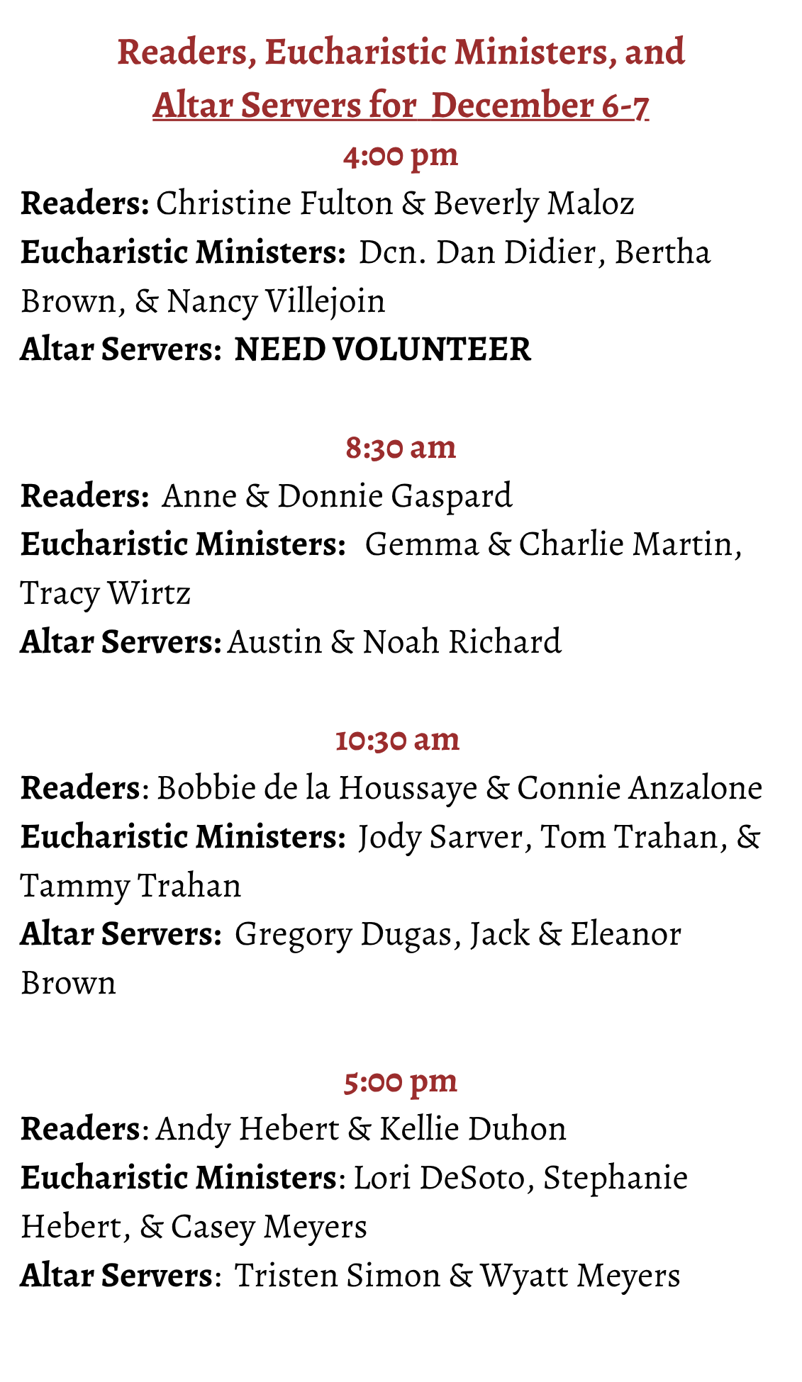 Eucharistic Ministers must be in good standing with our Catholic Faith, able to receive Holy Communion themselves and be properly disposed to serve the faithful readily. All Eucharistic Ministers are asked to check-in at the Sacristy at least 15 minutes before Mass begins so that the presiding priest may know that the gathered people for Mass will receive Holy Communion efficiently.